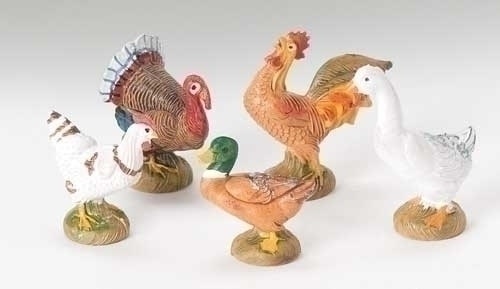 Bethlehem Birds features a chicken, rooster, turkey, duck and goose as lifelike and hand painted accessories. Part of the 5" Collection.